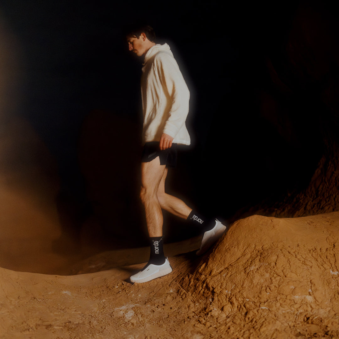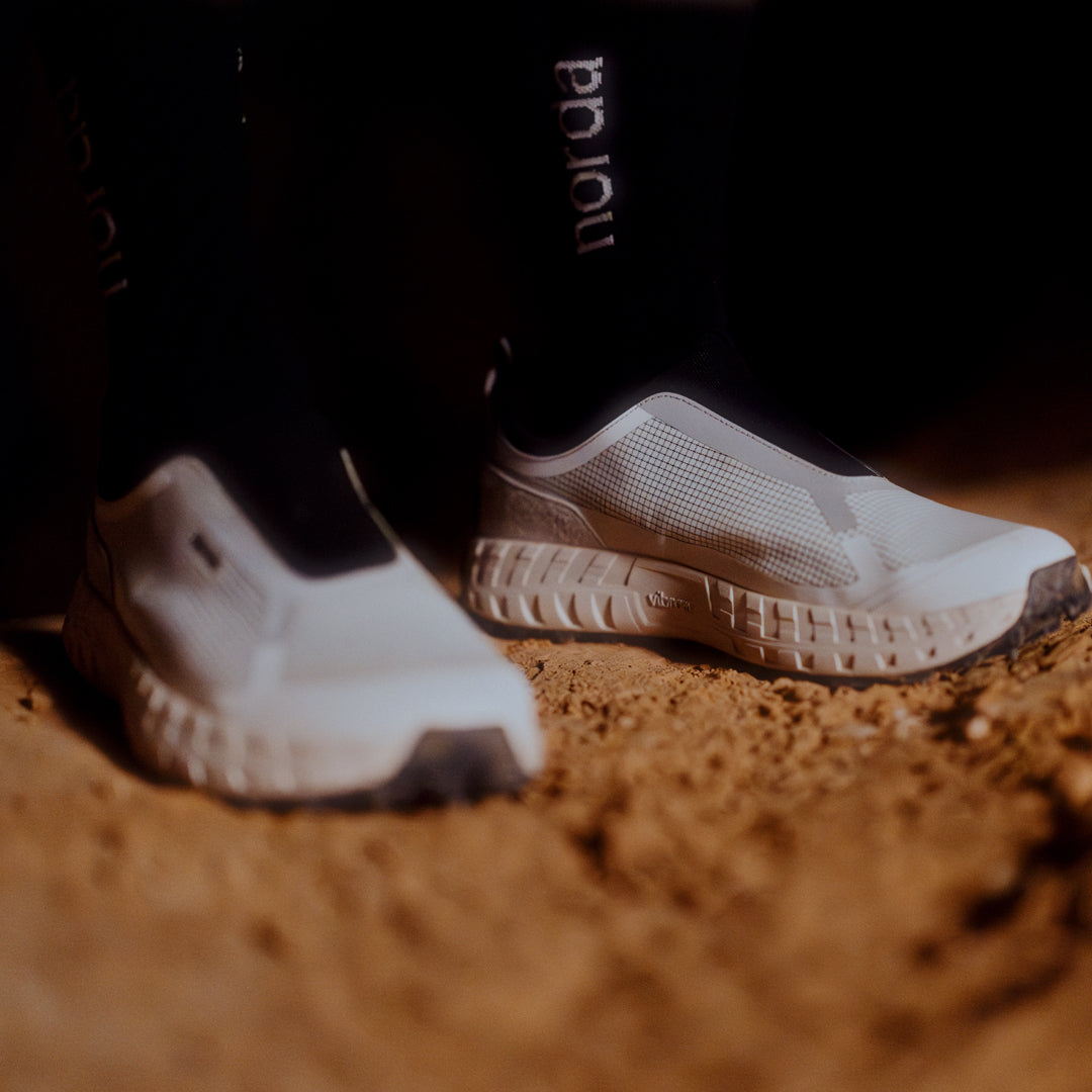 A Bio-Dyneema®️ upper with an added elasticized Bio-Dyneema®️ developed exclusively by norda™️ allows for a fit that remains unchanged over time